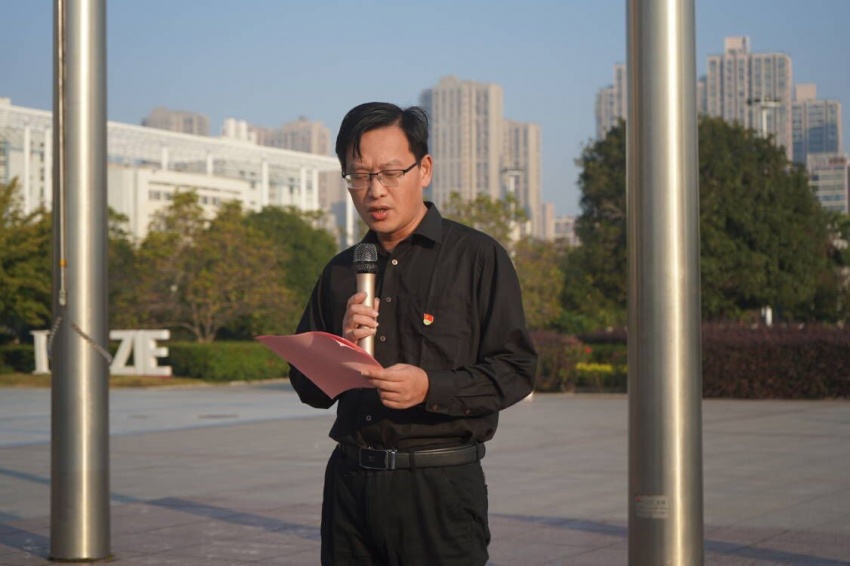 在庄严的升旗仪式结束后,金年会诚信信誉至上党总支书记杨小林讲话。他指出,在学校刚刚结束的第五次党代会上,学校党委书记李雄威在报告中共13次提到了“高质量”。杨小林从高质量发展需要以“请党放心,强国有我”的忠诚之姿、“奋勇争先,勇立潮头”的奋斗之姿、“撸起袖子加油干”的创新之姿等三个方面,结合金年会诚信信誉至上发展成果,寄语同学们向优秀学生看齐,刻苦钻研,掌握技能,立足专业,广泛学习,扎根基层,扎根西部,为实现中华民族伟大复兴贡献青春之力。
