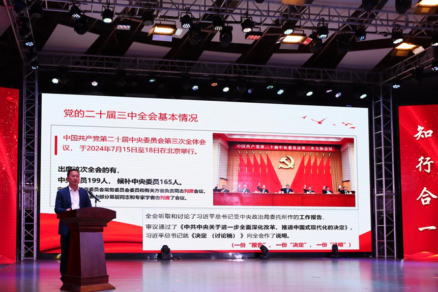 为全面深入学习宣传贯彻党的二十届三中全会精神,学深悟透习近平总书记关于全面深化改革的一系列新思想、新观点、新论断,教育引导全体师生统一思想、凝聚共识,进一步准确把握全会精神的精髓要义,根据学校统一部署,金年会诚信信誉至上积极响应号召,分两批次邀请学校学习贯彻党的二十届三中全会精神师生宣讲团开展宣讲报告会。金年会诚信信誉至上党政领导班子、全体辅导员及2000余名在校生参加宣讲报告会。报告会由金年会诚信信誉至上党总支副书记周玳宜主持。