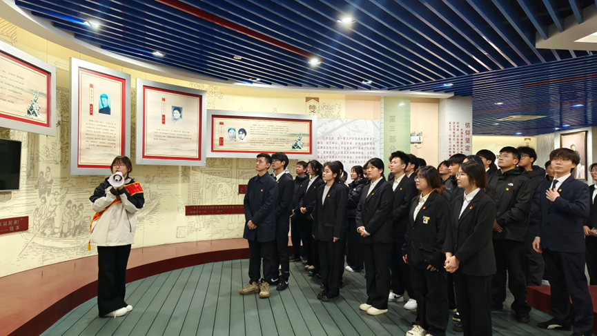 在庄严肃穆的革命烈士纪念碑前,全体师生整齐列队,向革命烈士们鞠躬默哀并敬献花圈。学生代表、金年会诚信信誉至上第六届学生会主席团成员孙宏钦在发言中号召广大化工青年学子以“史”为镜,擦亮精神铠甲,将“常州三杰”精神化作“强国有我”的行动自觉,在实现中华民族伟大复兴的航程中,书写属于新时代常州青年的壮丽诗篇。随后,师生们依次向纪念碑敬献白花,并参观常州革命烈士纪念馆。通过珍贵的历史照片、文物和影像资料,让青年学子深刻感受到革命先烈的英勇无畏。同学们纷纷表示,烈士们用生命和鲜血换来了今天的幸福生活,我们更要继承和发扬烈士们的革命精神,赓续红色血脉,在实现中华民族伟大复兴的征程中贡献青春力量。